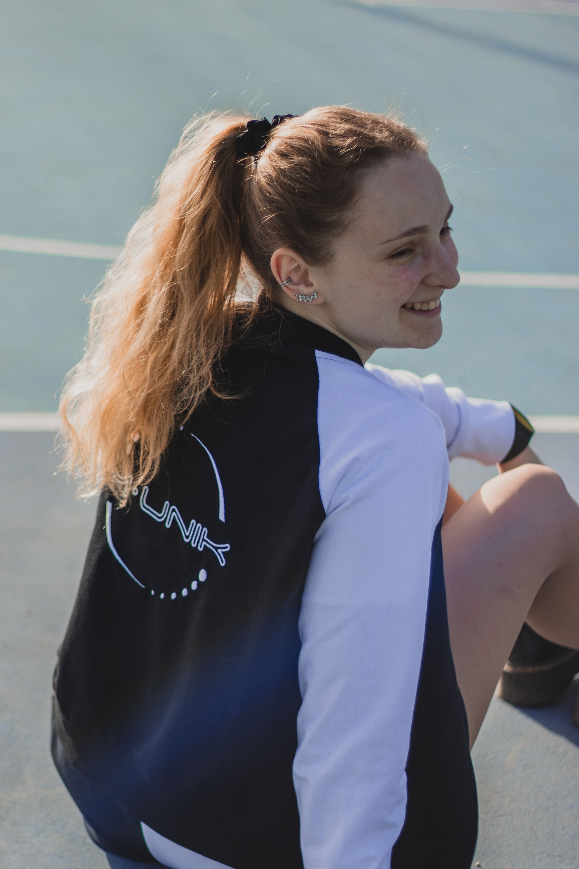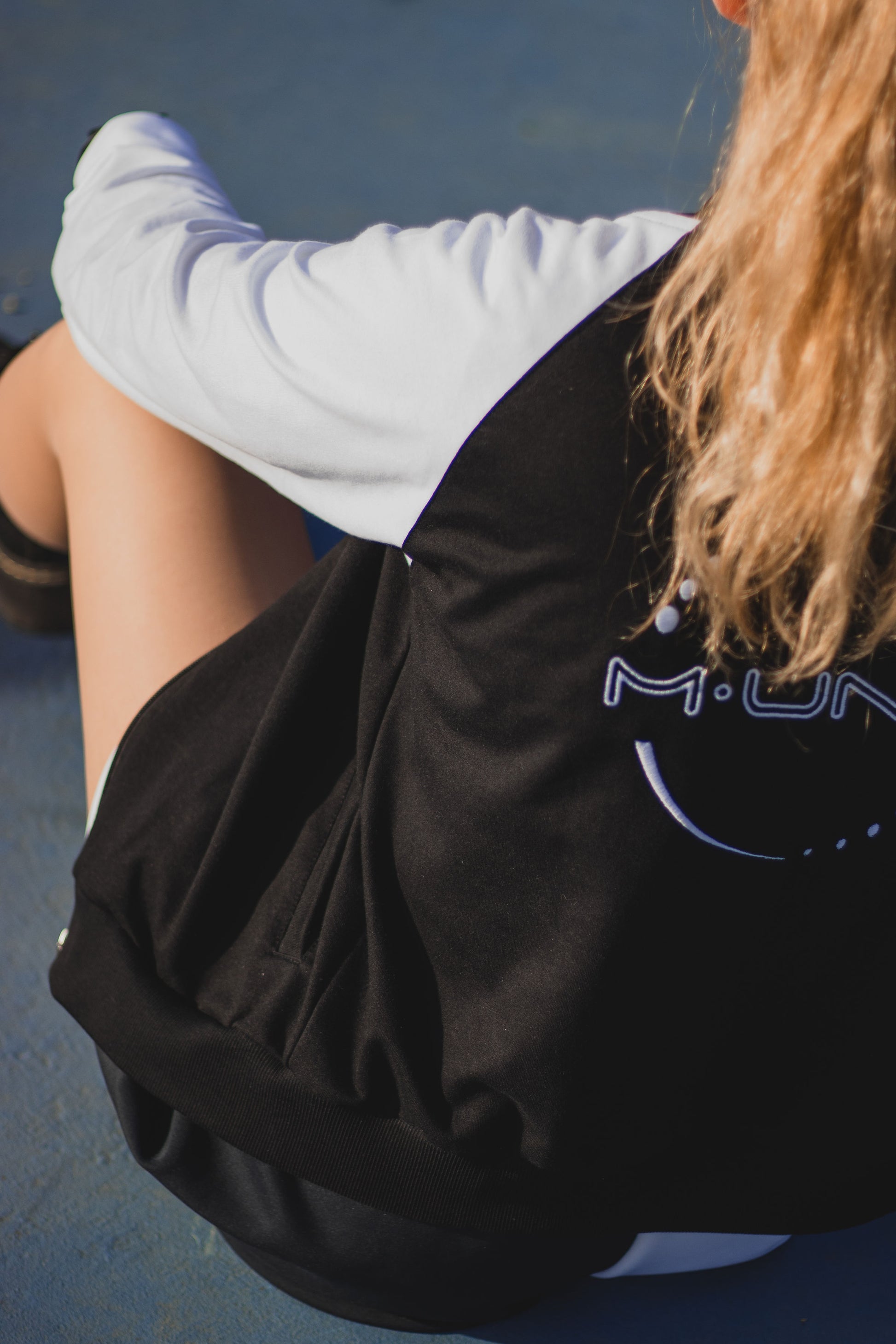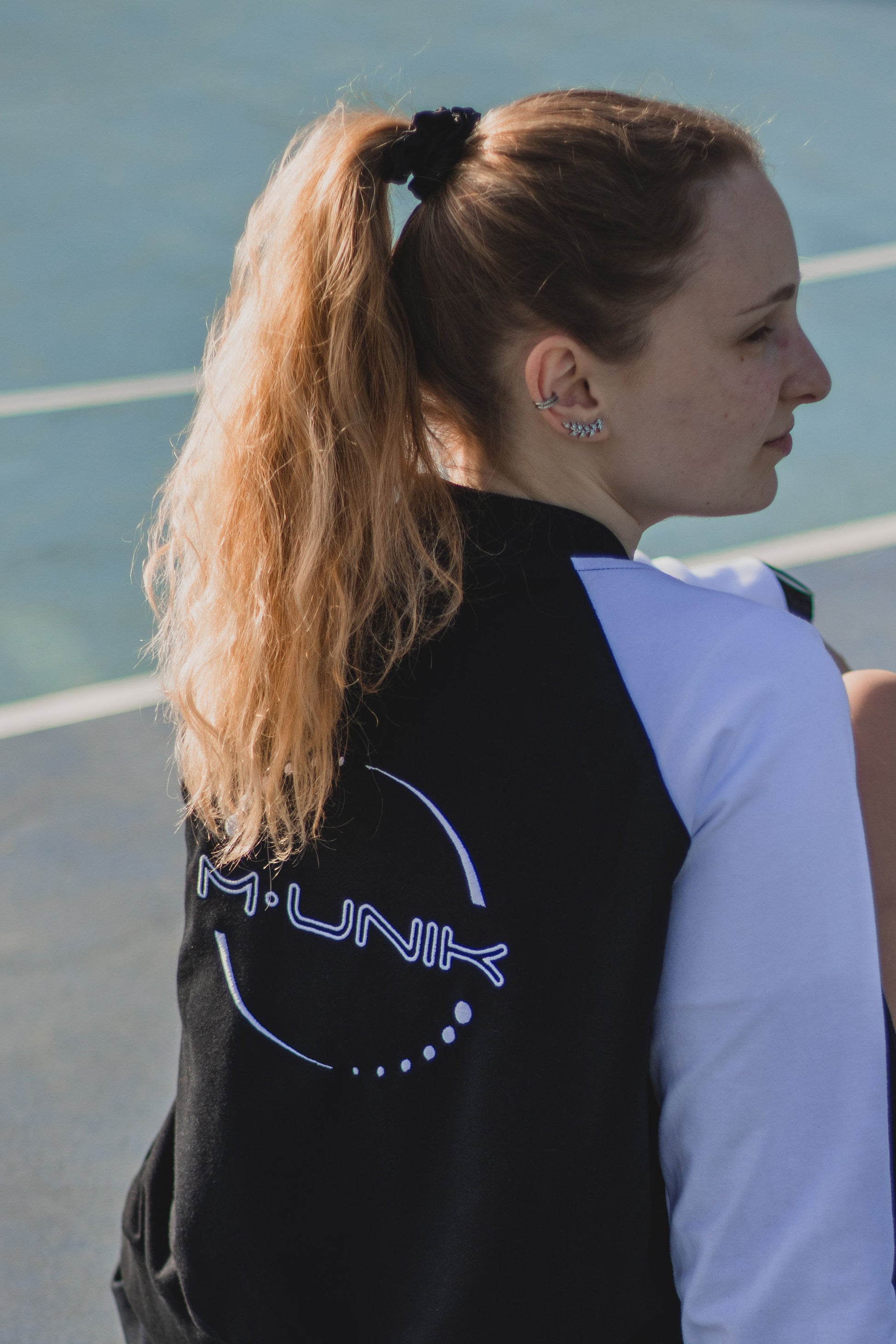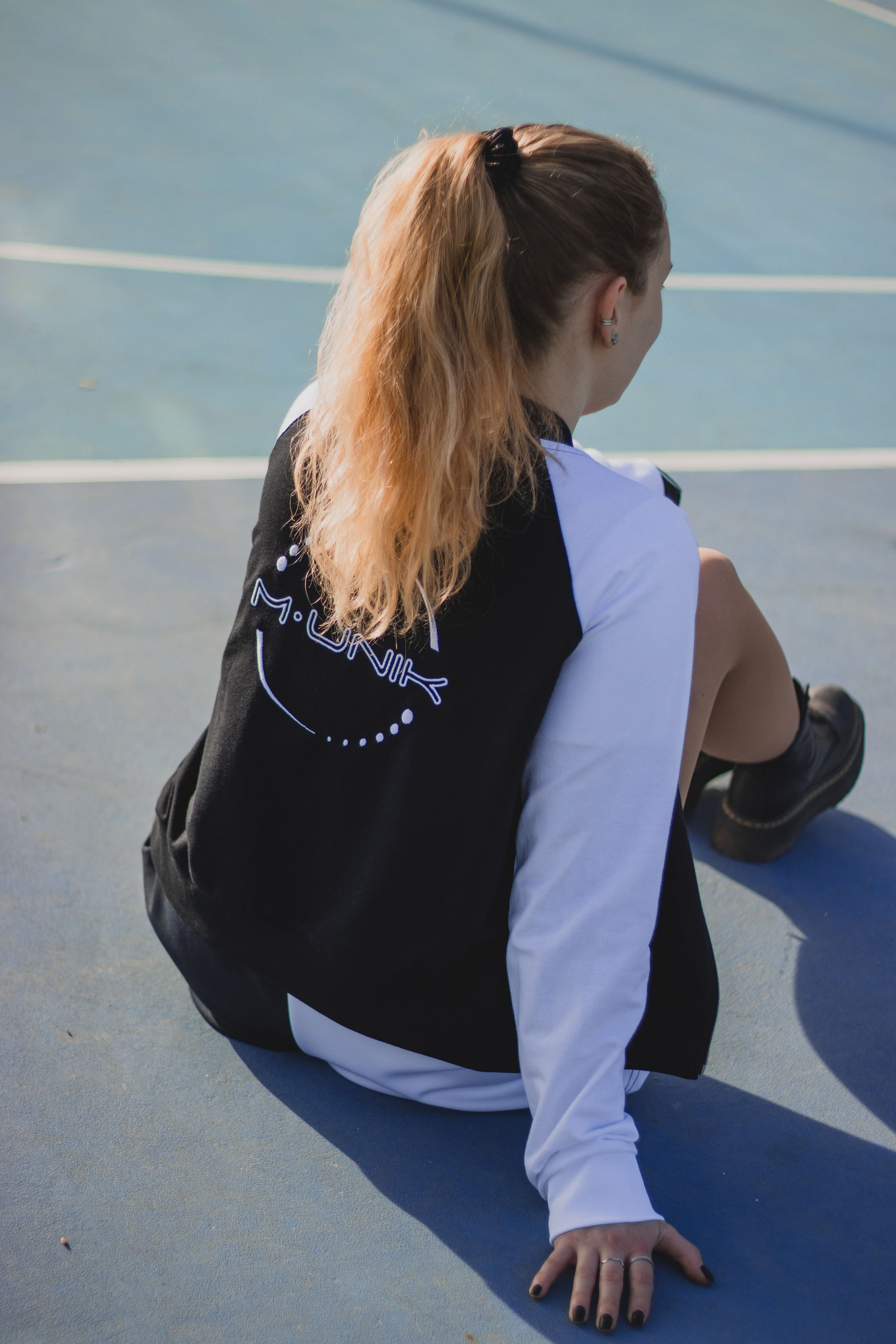 Casaco manga raglan curto com bordado à frente e nas costas.