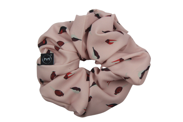 Scrunchie de cetim com padrão de aves no tamanho MAXI.