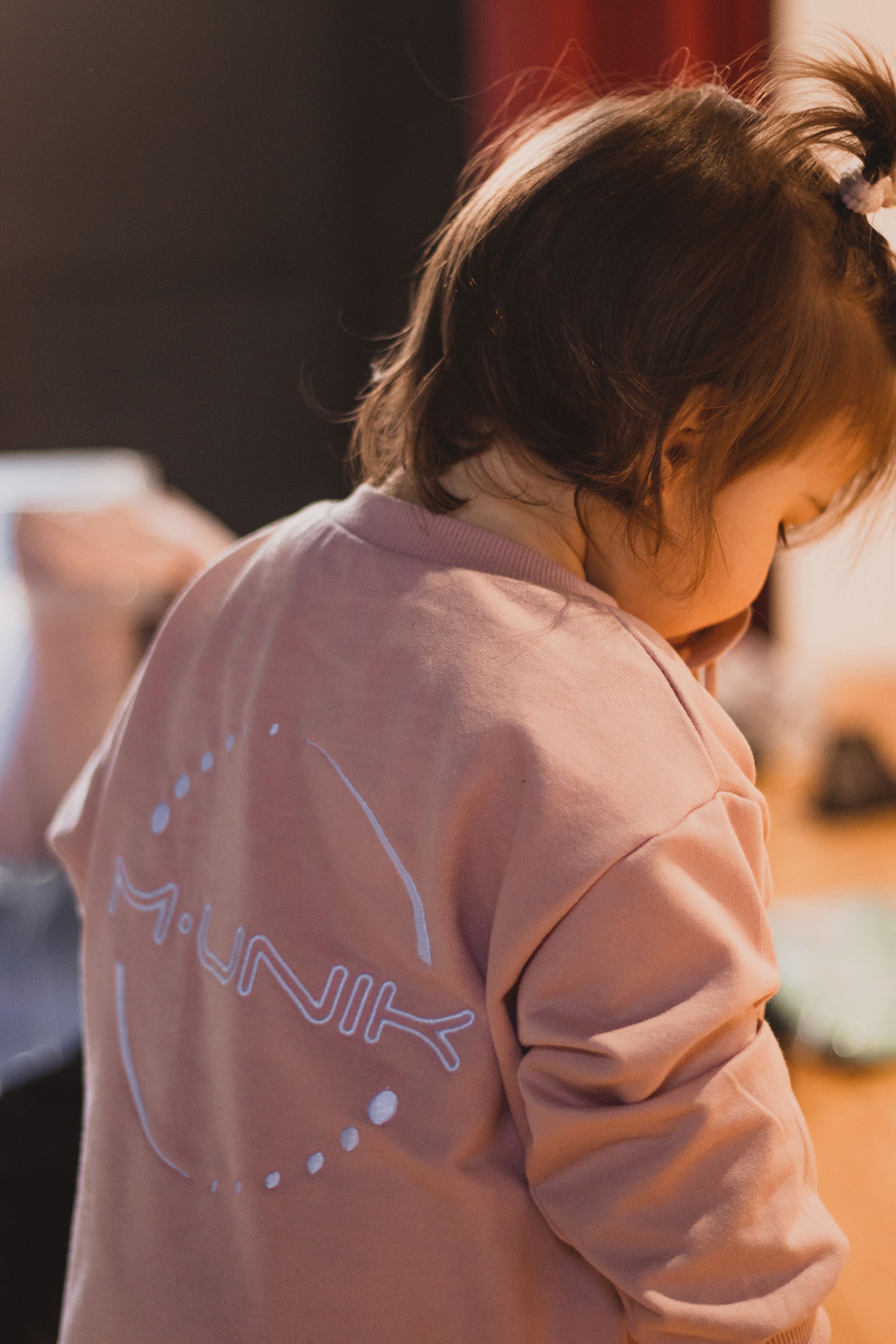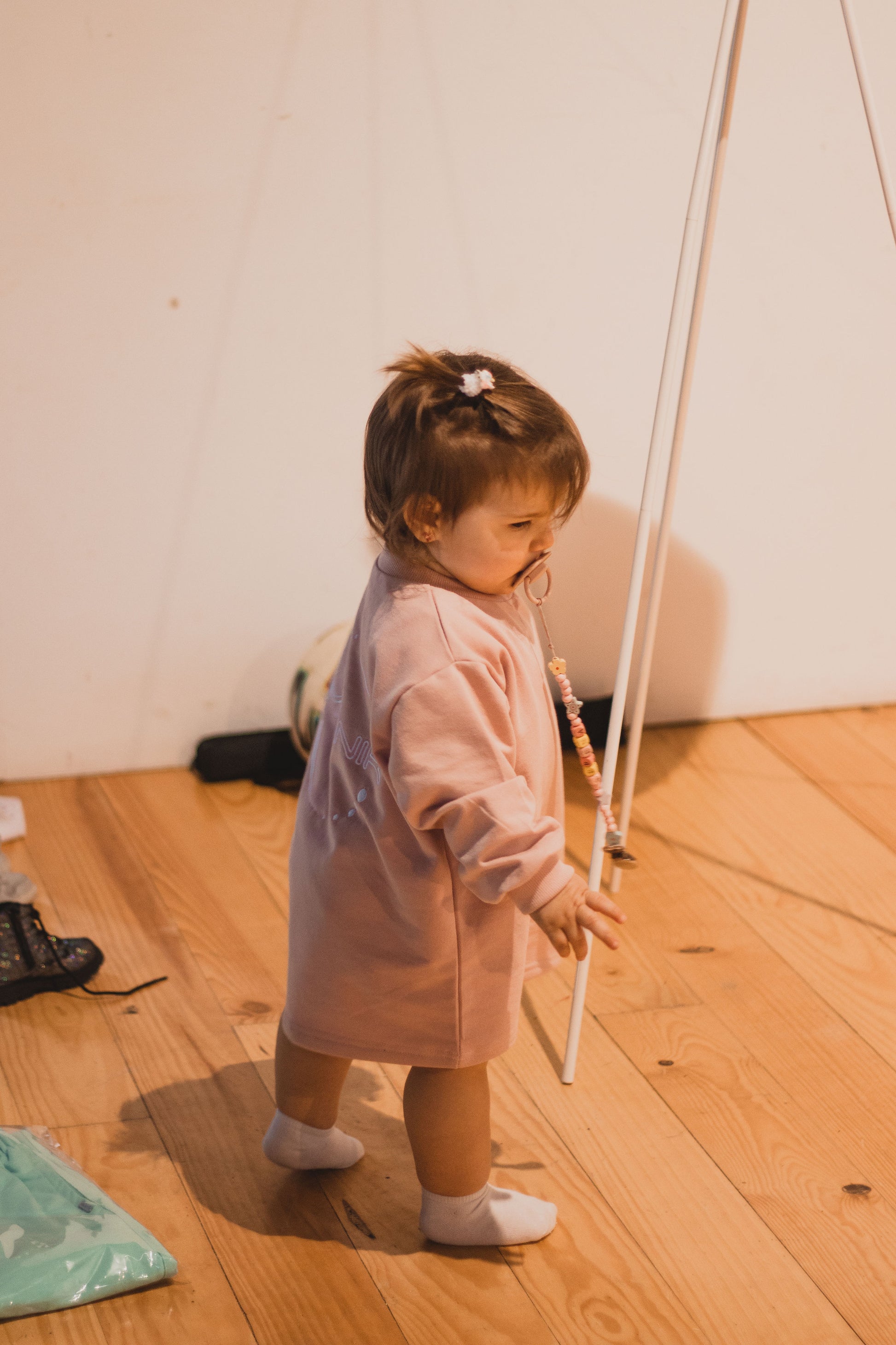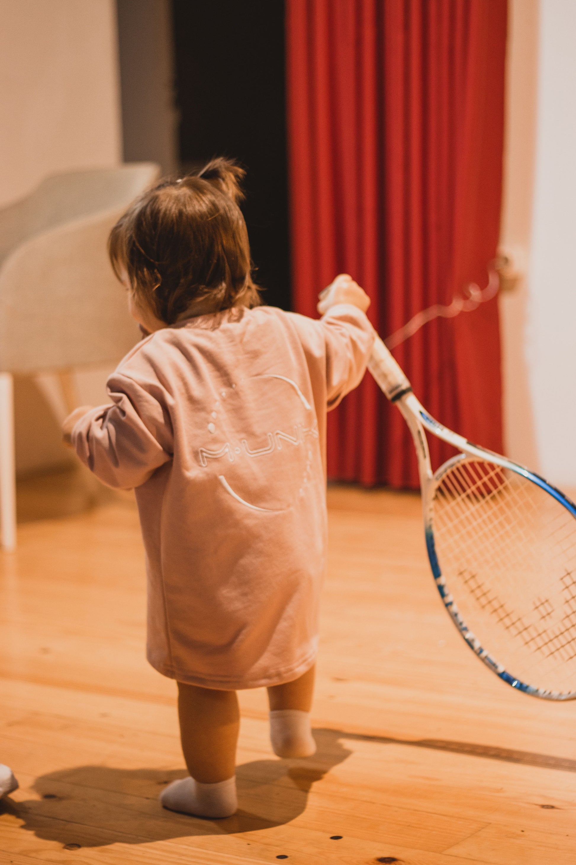 Vestido de manga comprida para menina, bordado na frente e costas.
