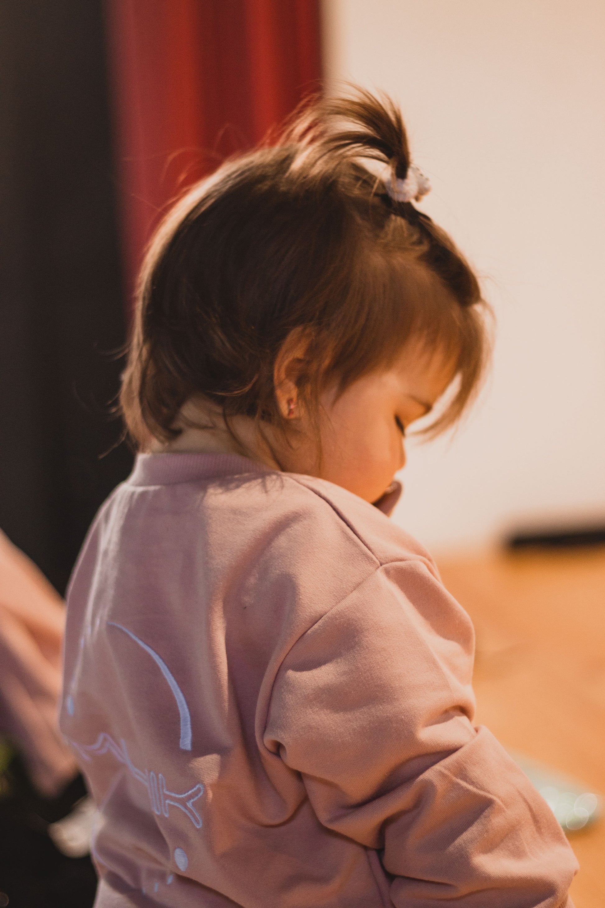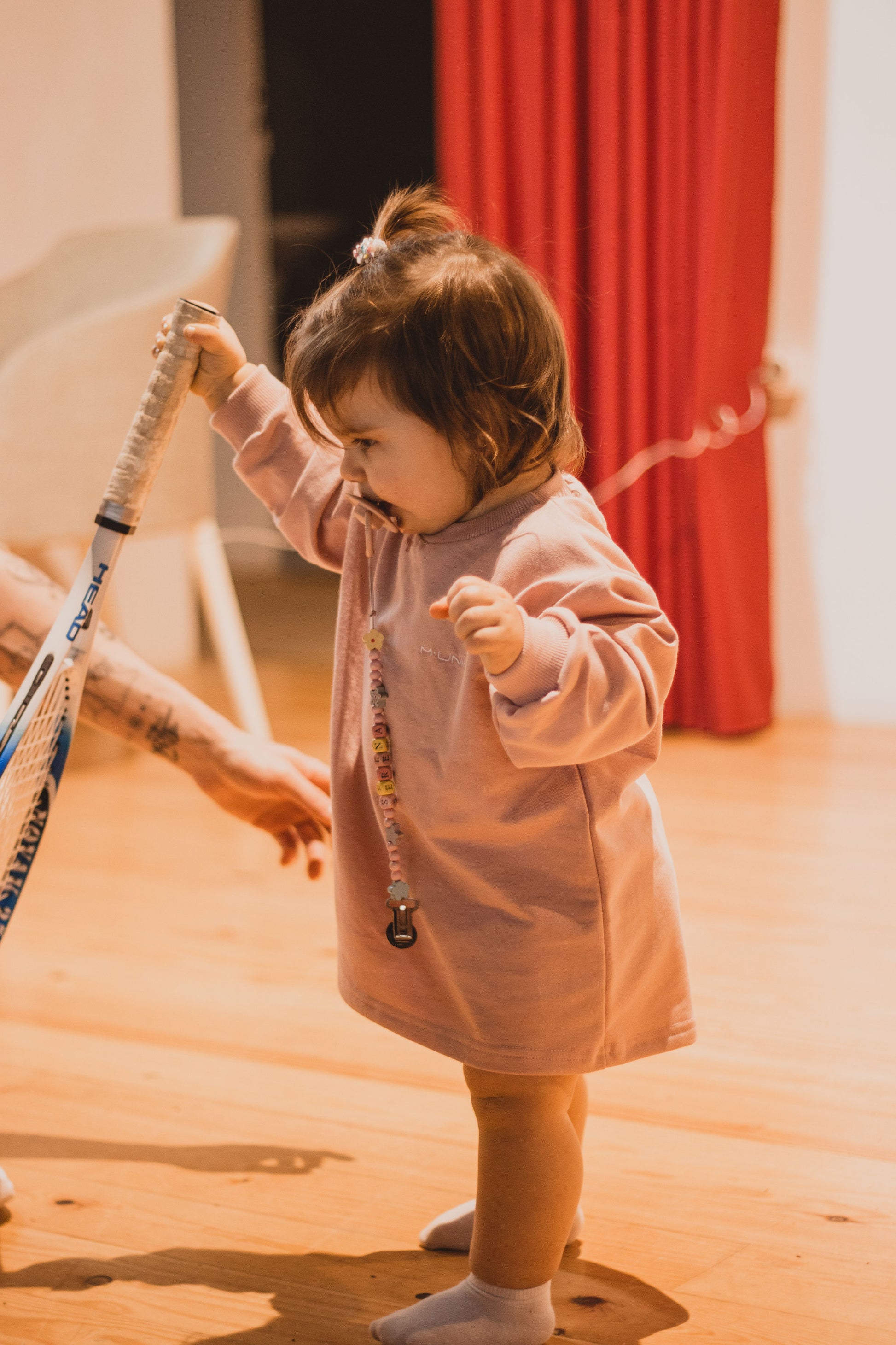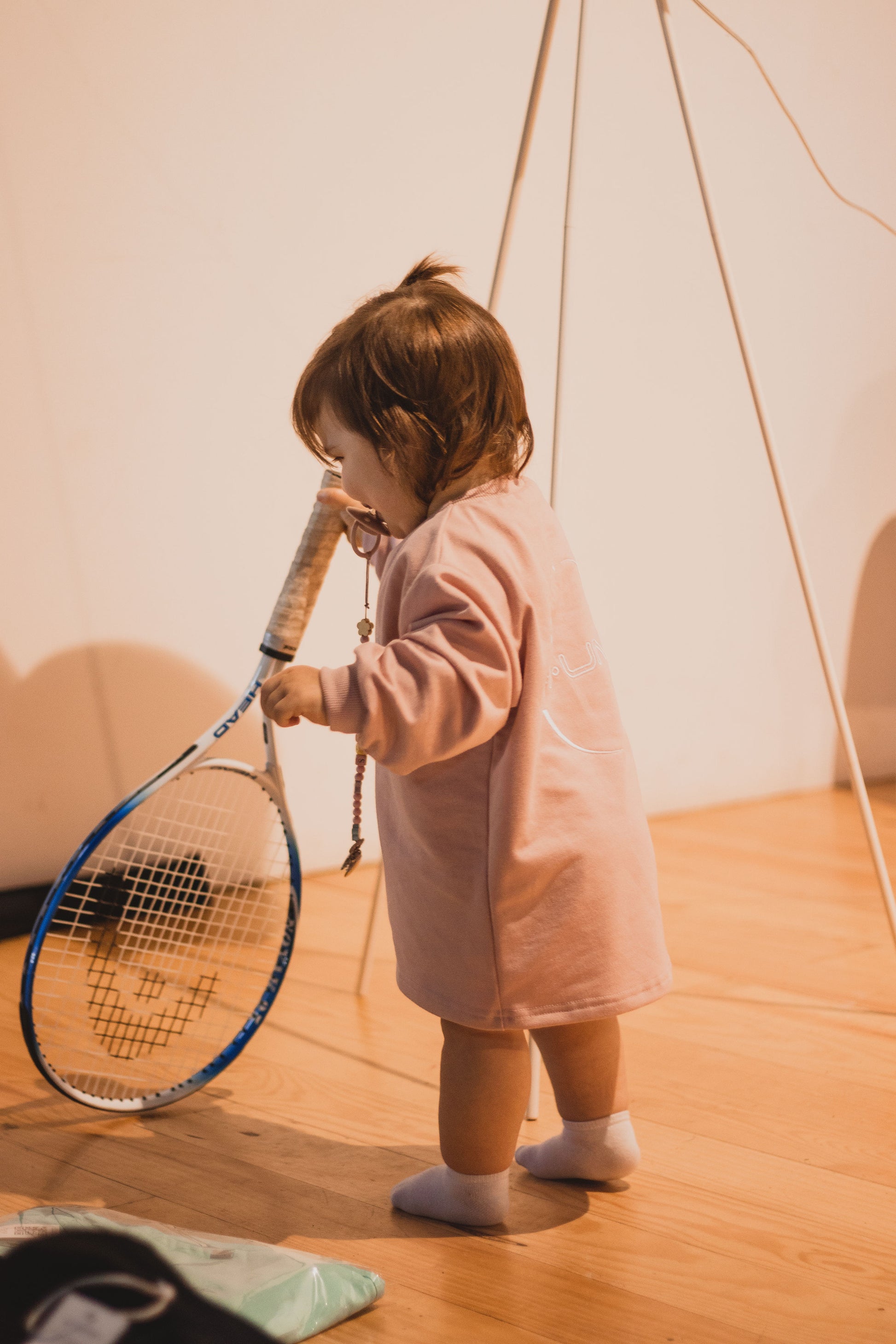 Vestido de manga comprida para menina, bordado na frente e costas.